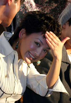 中新網(wǎng)3月30日電 據(jù)北京娛樂信報(bào)消息,昨天下午,香港導(dǎo)演麥子善最新力作懸疑警匪片《借兵》在京舉行了首映式,導(dǎo)演麥子善偕同主演寧靜、伍嘉龍等接受了采訪。