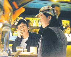 小齊偕Tina及友人,一行三人餐廳用餐,他們點了一桌子菜,Tina并沒有因為懷孕而特別戒口,酸辣等菜都有進食,坐在她身旁的小齊還關心地說:“吃多點啊,一人吃、兩人補!睂τ谀杏训捏w貼,Tina笑不攏嘴,顯然非常受落。