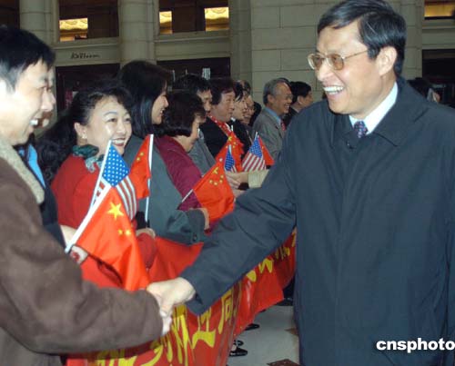 中國新任駐美大使周文重當地時間四月三日中午抵達美國首都華盛頓履新,受到當地華人僑學界代表的熱烈歡迎。