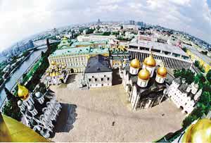 攝像機(jī)在克里姆林宮上空俯拍這一事實(shí)本身就非同尋常。盡管克里姆林宮也對(duì)外開放,但游客們只能自由進(jìn)入兵器館、國立克里姆林宮、教堂廣場(chǎng)、教堂博物館,觀看“炮王”等景點(diǎn),其他地方不能接近,更不允許攜帶攝像設(shè)備。