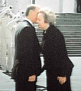 鏡頭三:這是普京夫婦,在盡量小聲地竊竊私語。他們什么話都沒說,但兩人的姿勢(shì)比任何話語都美觀,從這個(gè)創(chuàng)紀(jì)錄的鏡頭上可以清楚地看到這一點(diǎn)。