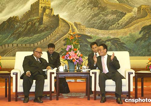 圖:吳邦國與孟加拉國民議會議長西爾卡舉行會談