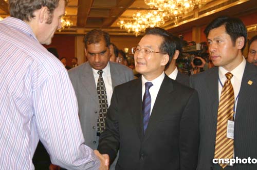 一進(jìn)入會(huì)場(chǎng),溫家寶逐一與各媒體人士握手。他說(shuō),“我是用笑臉來(lái)歡迎各位記者的,我確實(shí)很高興”。他借用印度前總理尼赫魯?shù)囊欢卧挘笆澜绲木掭啠芏鴱?fù)始,印度與中國(guó)彼此互相瞻望,……帶著歡欣友好的使命,正在創(chuàng)造著新的持久友誼”,來(lái)表達(dá)南亞之行即將結(jié)束時(shí)的心情。