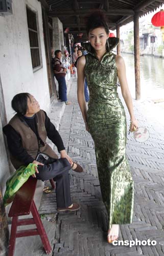 圖:靚女旗袍為西塘古鎮(zhèn)增色