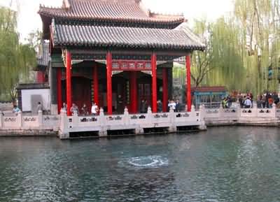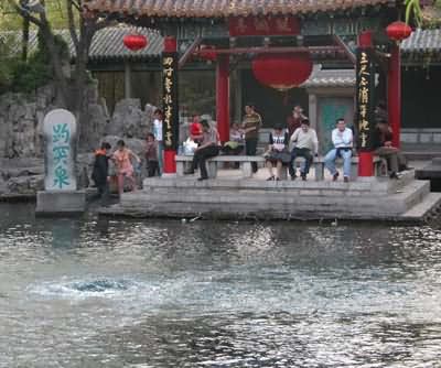 趵突泉位于濟南老城西南,是濟南“七十二泉”之首,水恒溫18攝氏度,三只泉眼,“泉源上奮,水涌若輪”,景色奇特。據載康熙皇帝南巡時,為其提寫了“激湍”御書。乾隆更喜愛趵突泉,將其封為“天下第一泉”。