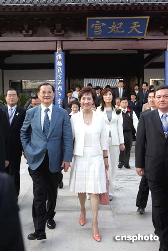 參觀結(jié)束后,連戰(zhàn)與國(guó)民黨主要領(lǐng)導(dǎo)人在天妃宮前合影留念。連戰(zhàn)還為天妃宮題詞“慈航普渡”。