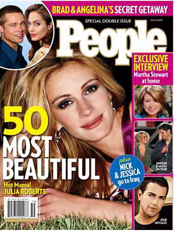 去年11月生下龍鳳胎的茱麗亞·羅伯茨則上了雜志“最有魅力50人”這期的封面,這份特刊將于周五發行。羅伯茨因此也創下一項紀錄:三次登上“最有魅力人物”的封面,9次被提名。