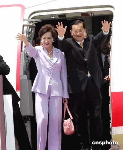 約中午十二時三十分,連戰一行陸續步上舷梯,連戰與夫人連方瑀一同向停機坪上的歡送人群頻頻揮手告別,與連戰先生同機返臺還有中國國民黨副主席吳伯雄、林澄枝、江丙坤等。