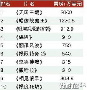 <功夫>滑出北美票房榜 <天國王朝>勉強稱雄(圖)