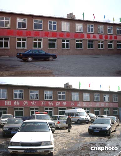 遼寧孫家灣煤礦大幅標語被涂抹遮蓋 作者:中新社(資料圖)