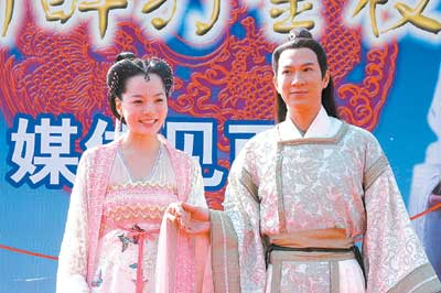 不過(guò)在現(xiàn)實(shí)生活中,看起來(lái)很相配的關(guān)詠荷和歐陽(yáng)振華并不是情侶,與關(guān)詠荷真正情牽一線(xiàn)的是在《大事件》、《千王之王2000》以及電視劇《妙手仁心》、《金裝四大才子》等劇中有著出色表現(xiàn)的張家輝。這一次《醉打金枝》重拍,張家輝代替歐陽(yáng)振華成為“新駙馬”郭暖,與蔡琳上演了一段古裝喜劇中的浪漫情緣,這種與現(xiàn)實(shí)生活中情侶角色的交錯(cuò),實(shí)在讓人頗感有趣。