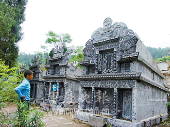 田緒明說,在彭水替人修建活墓已經形成一項產業。彭水縣漢葭鎮至少有三撥兒石工,專門替人做生基。但是這些石工都只能包到二道工,因為有一些專門的包工頭,每天夾個皮包,四處亂竄動員那些發財的生意人、官員等修建活墓,承包到工程后立即轉手。頭道包工頭能從每個活墓轉包中凈獲利潤為工錢總額15-20%。但是如今管理已經越來越嚴格,愿意修建活墓的官員大都是已經退休的干部,現職干部幾乎沒有。(來源:重慶晚報;記者丁香樂文/圖)