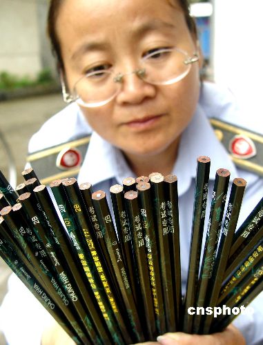 隨著2005年高考臨近,6月1日、2日兩天,山城江西省德興市工商管理部門,出動60余人次對全市48個文具用品店的2B鉛筆進行巡回性大檢查,清繳所有假冒、劣質的2B鉛筆。作者:卓忠偉