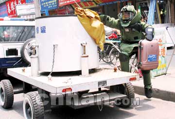 中新網6月6日電 據武漢晨報報道,排爆特警在不到5分鐘時間里排除了一只可能裝有爆炸物的可疑皮箱,圍觀者竟然大呼:“太快了,不過癮!”