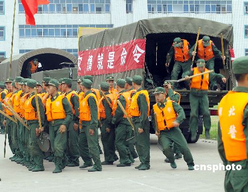 6月6日,武警湖北總隊第一支隊抗洪搶險突擊隊進行抗洪救災和物資準備演練。隨著夏汛的來臨,武警湖北總隊組織了3000千人的抗洪搶險突擊隊,在思想上、組織上和裝備物資上做好抗大洪的準備工作。作者:宋建春