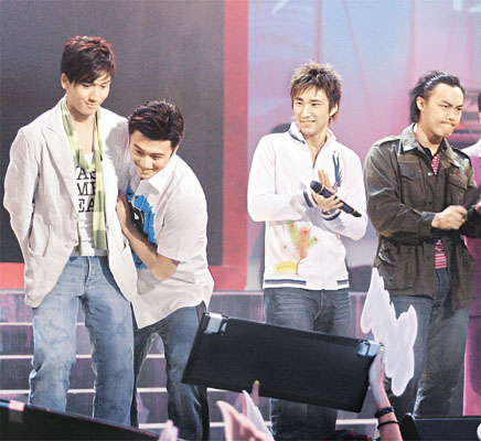 Eason與謝霆鋒齊上《勁歌金曲》,二人全程面左左,沒有交談半句。(太陽報圖)