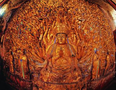大足石刻規模宏大,內容豐富,造像集中,技藝精湛,充分表現出我國晚期佛教造像藝術"神的人化,人的神化"的特征,其中"千手千眼觀世音"、"九龍浴太子圖"、"父母恩重經變圖"、"牧牛圖"等造詣較深;而北山石刻125號龕的"數珠觀音"則被譽為"東方維納斯"。1999年,大足石刻被列為世界文化遺產。(來源:華龍網)