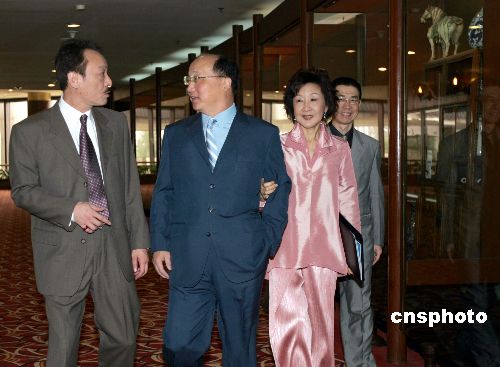 在北京參加2005年世界市長論壇的臺中市長胡志強與夫人,6月9日抽空在北京游覽購物。作者:任晨鳴