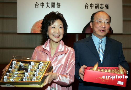 大陸民眾開始品嘗到新鮮的蓮霧、釋迦等臺灣精品水果后,臺灣知名的點心也來到了北京。臺灣臺中市市長胡志強帶著太陽餅、鳳梨酥等臺中特產(chǎn)來此參加世界市長論壇,他把這次會議當(dāng)成推銷臺中市的重要機會。