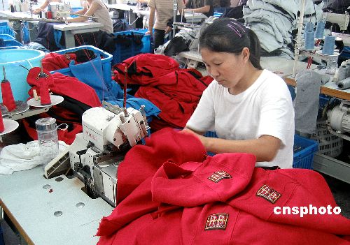 中國紡織品進出口商會副會長曹新宇近日表示,根據中歐達成的紡織品協議,自6月11日起中國向歐盟出口的棉布、T恤衫、毛衫、褲子、女襯衫、床單、連衣裙、胸衣、桌布、亞麻紗等10類紡織品將受到額定數量限制。商務部目前根據新出臺的《紡織品出口臨時管理辦法(暫行)》核定企業對歐盟出口數量。一旦企業獲得配額,中國海關和歐盟海關將憑企業電子數據、出口許可證書和原產地證書予以通關。圖為寧波一紡織企業女工在加工出口T恤衫。作者:張和平