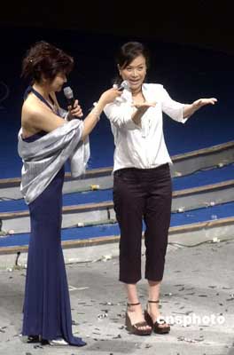 曾寶儀在慈善文藝晚會上與聾啞兒童在一起