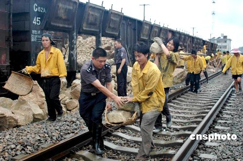 圖:廣東搶修京九鐵路大動脈
