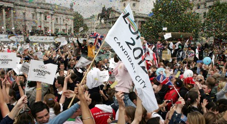 圖:倫敦民眾在廣場上慶祝申奧成功