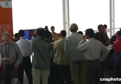 針對倫敦發生連環爆炸事件,正在鷹谷主持八國峰會的英國首相布萊爾中午發表簡短談話,對死傷者表示難過,并稱這明顯是一次恐怖襲擊,據了解,稍后他將返回倫敦。圖為布萊爾談話的電視畫面吸引大批采訪八國峰會的記者。作者:齊彬