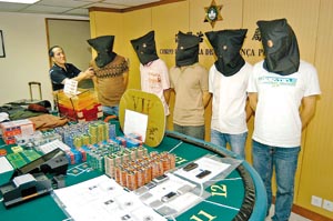“克隆”賭場(chǎng)案被捕的五名男子分別姓劉、姓馮、姓植、姓徐及姓梁,年齡介乎二十余至三十多歲,持通行證入境,全部來自廣州,警方相信目前仍有多名涉案人士在逃,正與內(nèi)地警方交換資料追查。
