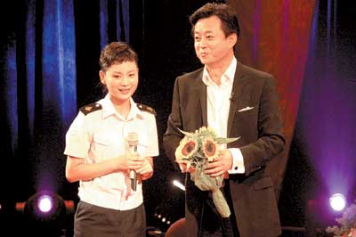 在小品《如此包裝》中,給趙媽伴舞的演員中有一個(gè)就是朱軍的妻子譚梅。昨天這個(gè)特殊的日子,主持人朱軍“假公濟(jì)私”安排了自己的妻子也出來(lái)說(shuō)兩句,這也是他們夫婦首次在節(jié)目中亮相。譚梅給趙媽獻(xiàn)上的是五枝盛開(kāi)的向日葵,她說(shuō):“希望趙媽在天堂里永遠(yuǎn)年輕,笑口常開(kāi)。”(張學(xué)軍)