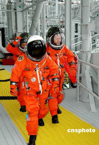 圖:“發(fā)現(xiàn)號”機組人員進(jìn)入太空艙