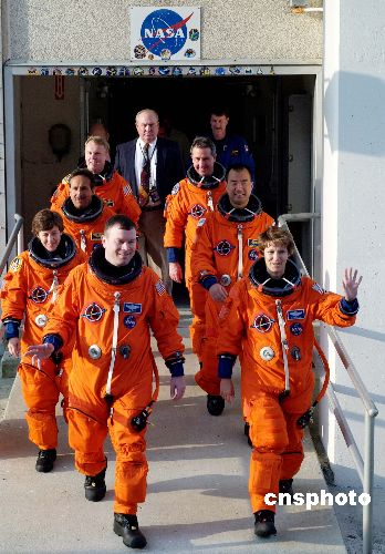 圖:“發現號”機組從指揮部和終檢大樓出發