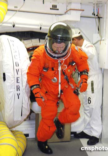 “發現號”在二十六日上午八時二十四分開始,機組進入太空艙準備發射。作者:賈國榮