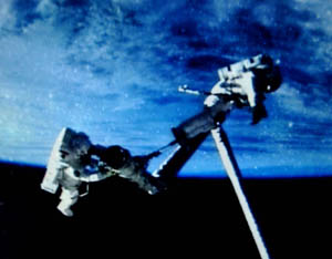史蒂芬·羅賓遜和野口聰一接著擔任“裝修工”,把外置攝像機和光學系統安裝在空間站的支撐架上,之后從空間站外取回實驗盒,再安裝一個新的。