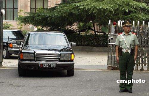 八月四日,正在北京舉行的第四輪六方會談進入第十天。圖為朝鮮代表團團長金桂冠的車輛離開大使館前往釣魚臺國賓館。作者:廖文靜