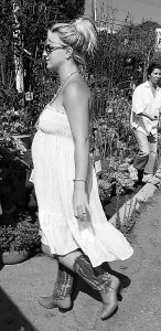 布蘭妮挺大肚逛花店 撩裙角扇涼大腿裸露(圖)