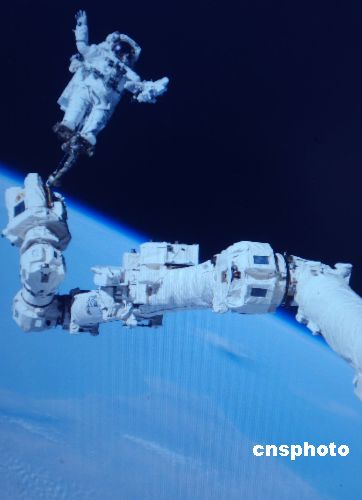 八月七日在“發現”號航天飛機告別國際空間站向著地球返航時,美國航空航天局(NASA)播發了精彩照片回顧:技高膽大的宇航員羅賓遜完成太空行走,站在機械臂頂端如太空雜技演員。作者:賈國榮(翻拍)