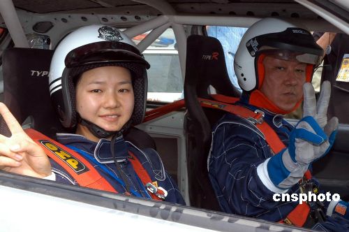 8月8日,由中華人民共和國公安部中國前衛體育協會主辦的2005中國警察汽車拉力賽總決賽在廣東惠州市開戰,來自全國各條公安戰線上的五十個代表隊共一百多名選手參賽。此次比賽歷時十五天,全程達五千多公里。圖為廣東惠州市公安局代表隊車手孟曉軍、楊偉茹。作者:宋秀杰
