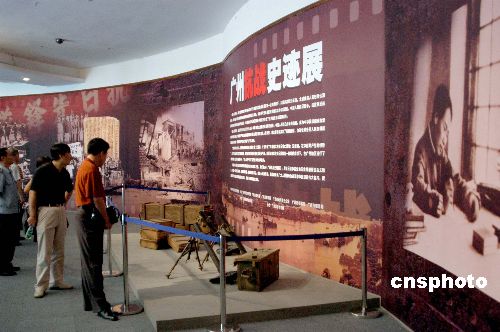 廣州抗戰(zhàn)史跡展九日在廣州藝術(shù)博物院舉行。展覽共分六個部分,“七七”事變前廣州抗日救亡運動史跡、國共合作后廣州抗日救亡運動史跡、日軍在廣州暴行遺址、正面戰(zhàn)場抗戰(zhàn)史跡、中共領(lǐng)導(dǎo)下的抗日斗爭活動史跡、抗日勝利等三百多張圖片、一百多件文物。作者:劉衛(wèi)勇