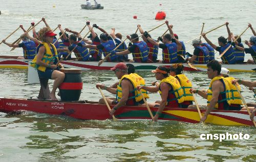 圖:“洋人”熱衷紐約第十五屆龍舟節