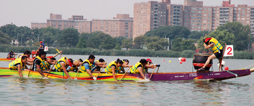 紐約的一支龍舟隊在初賽中奮勇當先奪得小組冠軍