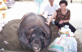 動保團體又說,豬只一旦下窟后,就是強迫灌食的開始,甚至有飼主為了方便灌食,在喂食時會有用一根長而粗的竹竿,綁在豬只上面,緊壓豬只背部,讓豬更加無法動彈,最后神豬比一般豬只還要肥10倍,還得心臟病。