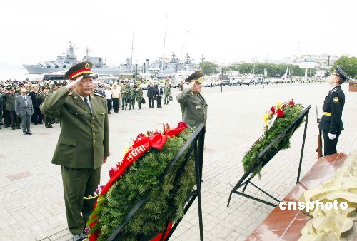 中俄兩軍總參謀長向紀念碑敬獻花圈