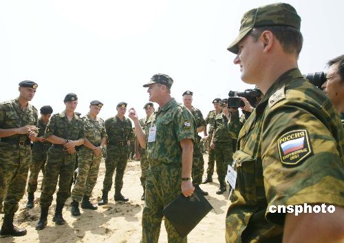 中俄軍事演習部署完畢。圖為參加中俄聯合軍事演習的俄方海軍陸戰隊官兵在海灘邊熟悉地形。作者:王麗南