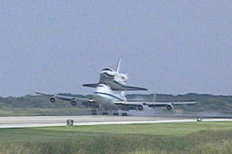 “發(fā)現(xiàn)”號航天飛機(jī)被“背回”美國佛羅里達(dá)州肯尼迪航天中心