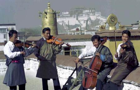 1995年和1997年,歌手朱哲琴的專輯《阿姐鼓》《央金瑪》讓西藏題材音樂走向世界。兩張專輯分別在全球60多個國家出版發行,81個國家同步播出,并贏得一片叫好之聲和無數的獎項。專輯對西方電子音樂與西藏宗教音樂的結合進行了嘗試,并揉進了許多西藏宗教故事、人物、經文。她那清脆得不夾一絲嘈雜的唱腔,讓歐美國家驚呼“天籟之音”。