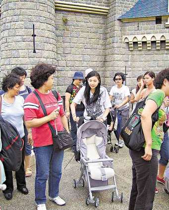 當日所見,一身便服的邱淑貞與菲傭帶同幼女排隊與白雪公主合照后,邱淑貞即把幼女抱回嬰兒車,帶同菲傭敏捷地離開人群,趕往睡公主城堡合正在排隊的沉嘉偉和長女。