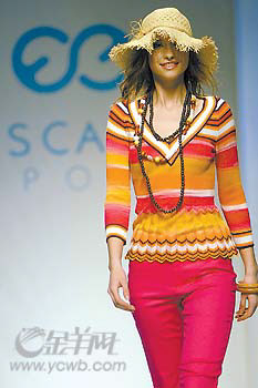 色彩繽紛的Kookai一向善玩多彩條紋,每季都會(huì)變幻不同花樣。今季可見(jiàn)更多橫紋與斜紋、縱紋的交錯(cuò),深V的領(lǐng)口設(shè)計(jì)彰顯女人味。縱條紋與單色相拼接的小背心、蓬蓬裙,看上去休閑又俏皮,針織條紋背心則被用來(lái)與格仔襯衫搭配,帶出一股中性美。與之類(lèi)似是ESCADASPORT,雖然用經(jīng)典黑白配來(lái)演繹水手條紋,卻將不同紋理分割羅列于同一件衣服上,甚至不惜在前襟開(kāi)滿(mǎn)百合花的T恤背面玩起縱橫交錯(cuò)的游戲,陰柔和硬朗完美交接,顯得自由奔放。