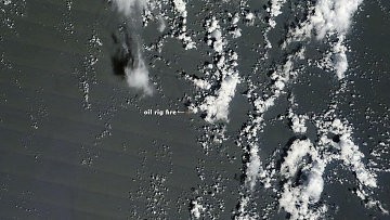 9月2日,美國路易斯安那州中部弗米利恩加灣以南約80海里(處墨西哥灣海域的一處石油平臺發生爆炸,美國國家航空和航天管理局(NASA)Terra衛星記錄下爆炸后鉆井平臺情況。