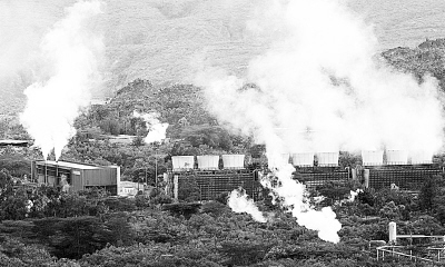 圖為肯尼亞裂谷省的歐卡瑞地?zé)犭姀S。該地?zé)犭姀S二期擴(kuò)建工程目前已經(jīng)完成了70%的地?zé)峋@探工作,新的地?zé)峋A(yù)計(jì)將在兩年內(nèi)產(chǎn)生280兆瓦的電能。肯尼亞從1981年開(kāi)始開(kāi)發(fā)地?zé)豳Y源以來(lái),共鉆探了33口地?zé)峋S捎诘責(zé)豳Y源不受氣候因素影響,發(fā)電價(jià)格不受?chē)?guó)際原油價(jià)格波動(dòng)的干擾,地?zé)岚l(fā)電是肯尼亞目前最便宜的發(fā)電方式。肯尼亞地?zé)岚l(fā)電資源非常豐富,共有7000兆瓦的地?zé)岚l(fā)電潛力。